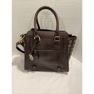Original London Fog Brown hand bag simulated leather with Gold Tone hardware