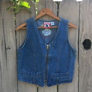 Original Mickey Inc. zip up denim vest. Embroidered Mickey head on back that reads " Mickey Friends". Perfect for pins or patches! 🐭