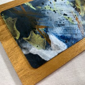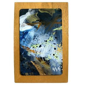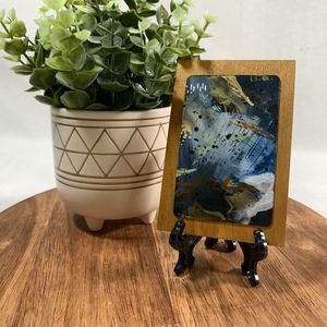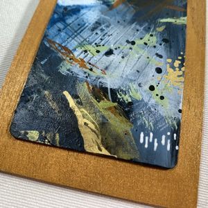 Original Mini Painting Abstract Acrylic Art Blue Black Gold Metallic Chances 1