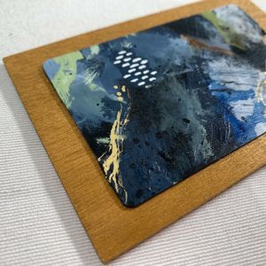 Original Mini Painting Abstract Acrylic Art Blue Black Gold Metallic Chances 4