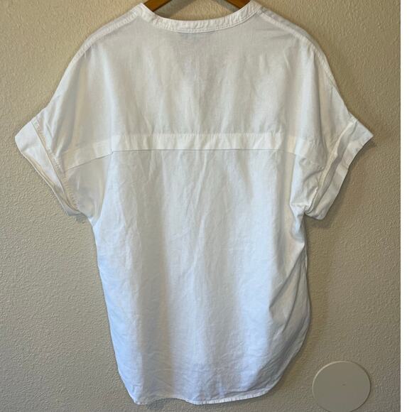 Nicole Miller Original Boho Linen Blend White Short Sleeve Boxy Tunic Large