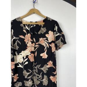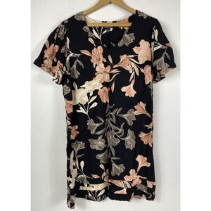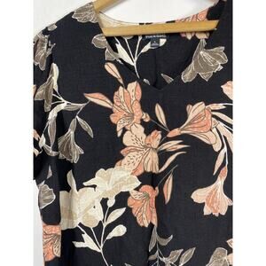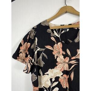 Original Nicole Miller Dress Linen Black Tropical Floral Beachy Boho Large