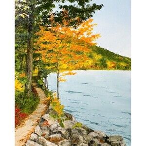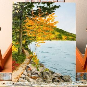 Original Oil Landscape Painting Autumn Landscape Acadia Jordan Pond Signed 8x10"
