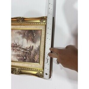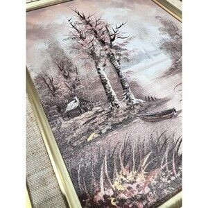 This original oil on canvas painting, created by artist Doumer in the early 20th century, features a winter landscape of a cottage on the lake. The medium-sized artwork measures 15 inches in height and 12.5 inches in length, with a framed impressionistic style that captures the essence of a unique winter scene. Handmade with the artist's signature, this one-of-a-kind piece showcases the intricate details and craftsmanship of traditional oil painting techniques. Featuring a gold gild frame. As an antique or vintage piece this is in beautiful condition but has signs of age as is expected. Please see pictures and feel free to ask questions before purchasing. No returns will be issued on this item.