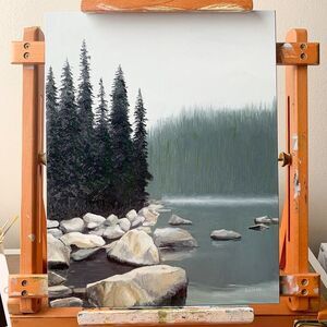 I'm Sarah Aileen, a landscape painter living and working on an island in the Pacific Northwest. I draw inspiration from coastlines, lakes, and pines. My paintings are created to bring a sense of calm and clarity into your home. My paintings have found homes with collectors across the U.S., U.K., Canada, and Australia.