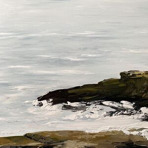 Title: "Tidal Shift" - Soft light drifts across the surface as the tide shifts inward, touching and spraying the edges of stone. A contemporary seascape that captures balance and movement in one moment.
