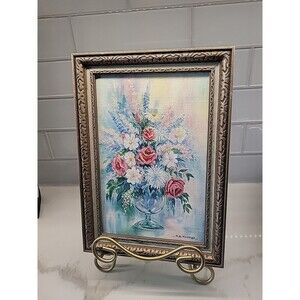 Original Oil Painting On Canvas Floral Still Life Framed Signed 8.5' x 5.5" art