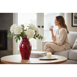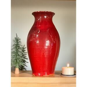Original Owens Pottery Red Vase Seagrove NC-12.5''-Copper Red Glaze-Chinese-Tall