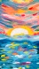 Collectible - Bright, Cheery Colorful Fluorescent Sunset. Sunset, Clouds and Ocean. This seascape is a one-of-a-kind original work of art is hand painted with high-quality acrylic paint on Canvas. For protection, it has been varnished with a glossy seal. Signed Front and Back.