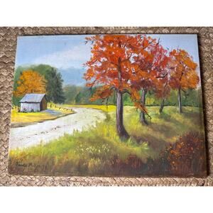 Original Painting Rustic Barn Country Road VTG 12"x9" Signed Frankie Canvas