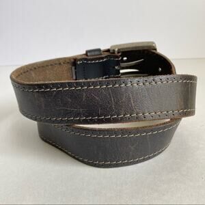 Original Penguin Dark Brown Leather Belt Silver Buckle Distressed Mens 36