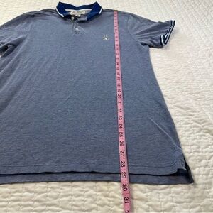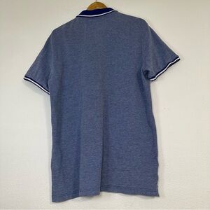 Stylish navy polo with white trim. Features embroidered logo on chest. Perfect for casual wear.
