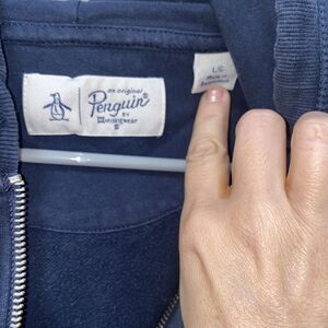 Original Penguin Full Zip Fleece Embroidered Pete Hoodie Navy Large