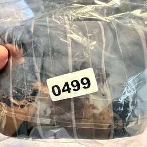 Sophisticated gray dress shirt with white stripes. Ideal for business or casual wear.