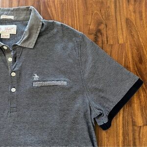 Stylish gray polo shirt by Original Penguin. Features a classic collar and button placket. Perfect for casual wear.