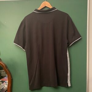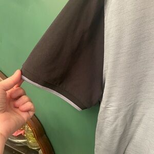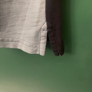 Stylish polo with contrasting gray and black design. Features a classic collar and chest pocket. Ideal for casual wear.