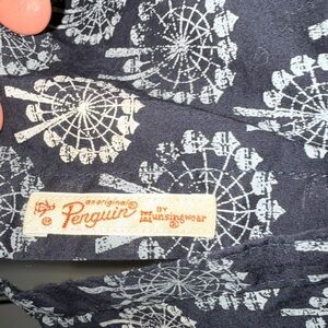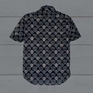 Original Penguin Heritage Slim Fit shirt in size XL. Featuring a unique ferris wheel print in white against a deep navy background, this short sleeve button-down is the perfect blend of quirky and cool.