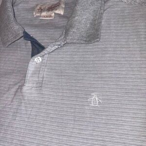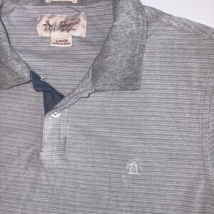 Original Penguin Heritage Slim Fit Short Sleeve Polo Gray White Stripe S