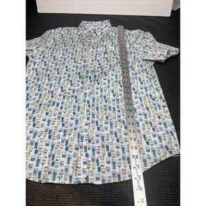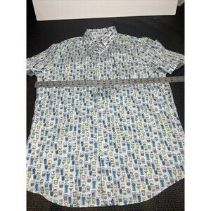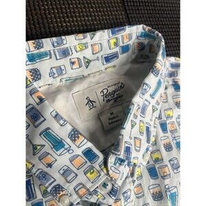 Original Penguin Men's Ballad Blue Regular-Fit Drink-Print Shirt, Medium