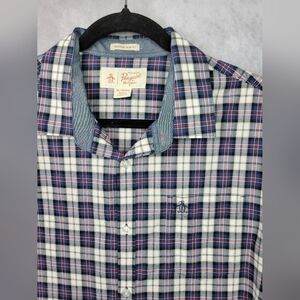 Original Penguin Men’s Blue White Red Crosshatch Button Down Heritage Slim Fit