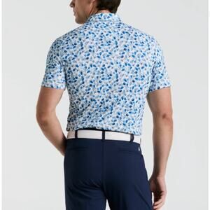 Head to the course in style wearing this Original Penguin men's golf polo. The single knit fabrication creates a lightweight feel, while added stretch provides a comfortable fit that moves with you. For warmer days, moisture-wicking will keep you feeling dry, even as your game heats up. A fun print and sleek self collar make this golf shirt a great addition to your golf wardrobe.