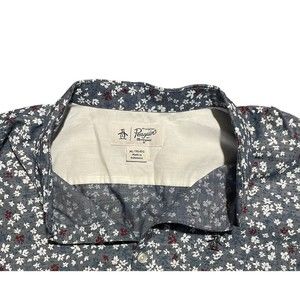 Original Penguin - Men's - Button Down Shirt - Short Sleeve - Floral Grey/Blue + White - XL