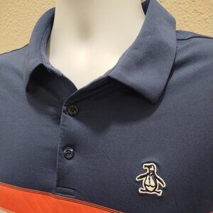 Original Penguin Men's Polo Shirt XL Blue Stripe RECYCLED POLY and ELASTENE Golf
