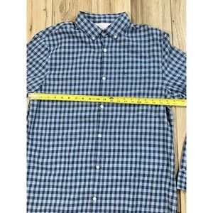 Original Penguin Mens Shirt Blue Gingham Large Slim Fit Button Up Long Sleeve