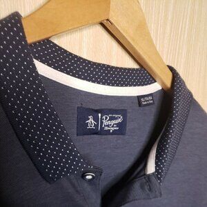 Origional Penguin men’s short sleeve navy polo with contrasting collar and armband XL. Gently used condition. Measurements are: 27” from shoulder to hem, and 23” from armpit to armpit.