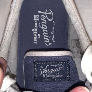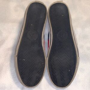 Original Penguin Mens Sz 12 Sneakers White Red/Blue Stripes Canvas Leather