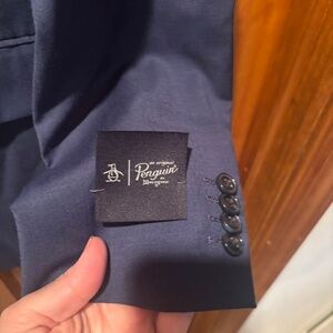 Original Penguin suit jacket blazer in blue. Wool blend. 2 button closure. Double vented. Wool blend. Men's size 40R. New without tags.