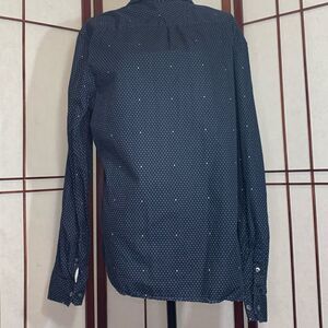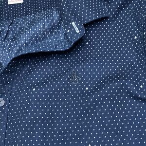 Original Penguin Navy Blue Button up collared shirt with dots and arrows XL