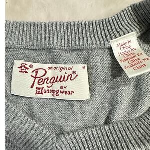 Original Penguin Pullover Sweater Men's Medium Gray V-Neck Long Sleeve Ribbed