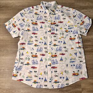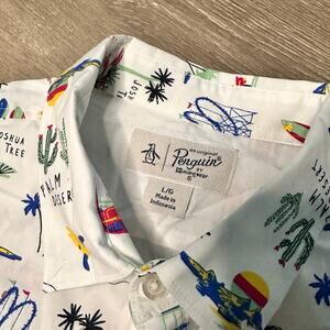 Original Penguin Road Trip Woven Short Sleeve Shirt White Button Down Size Large Mens