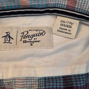 Original Penguin Shirt Mens 2XL Blue Pink Plaid Button Down Mosaic EcoVero Logo
