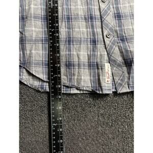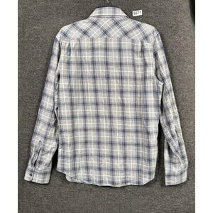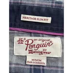 Original Penguin Shirt Mens Medium Gray Blue Plaid Heritage Slim Fit Button Down