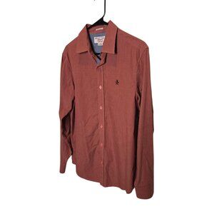 Original Penguin Shirt Men's Medium Red Check Long Sleeve Button Up