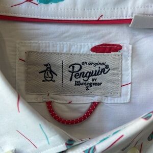 Original Penguin Shirt White Cotton Slurpee Short Sleeve Button Up Size Medium