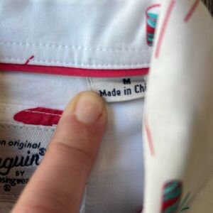 Original Penguin Shirt White Cotton Slurpee Print Short Sleeve Button Up Size Medium