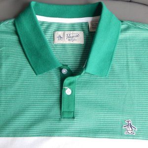 Original Penguin Short Sleeve Color Block Polo Shirt Dark Mint Green Striped XXL