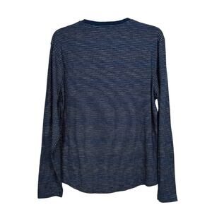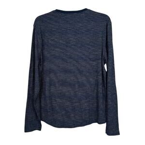 Original Penguin Striped Long Sleeve Henley Shirt Navy Blue Cotton Blend Mens Si