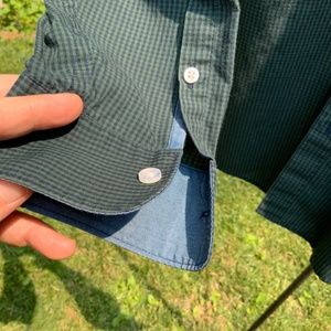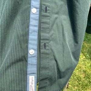 60 % cotton, 30% polyester green & navy shirt