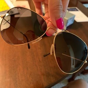Original ray-ban sunglasses for men. Gold amd black. In good condition. Used once. RFS:wrong size (62). With box and case. Bought it in NYC store.