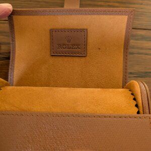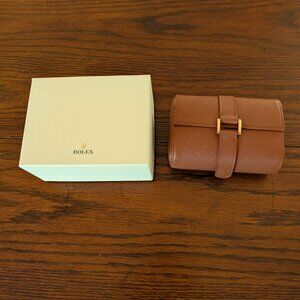 Original Rolex Watch Travel Case - genuine leather hand trim with gold plate clasp. New never used in original gift box.