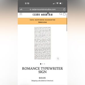 Original “Romance” Typewriter Sign by Cedar Mountain Studios.