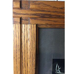 The frame is solid oak with exposed joinery — characteristic of 1980s Midwest framing styles. It complements the rustic, wildlife theme.