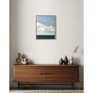 Title: "Cloudwatch" captures the quiet strength of the sea beneath a luminous sky. Layers of gray and white clouds gather and rise above calm, dark water, creating a serene focal point that suits contemporary coastal and modern interiors alike.