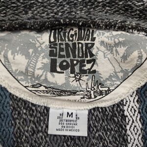 Original Senor Lopez Baja Hoodie Mens Medium Gray Pullover Hippie Boho Cotton