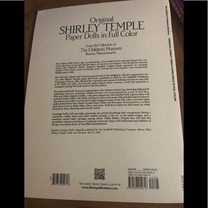 New Original Shirley Temple Paper Dolls In Full Color. Includes wardrobe typical in the 1930’s for a 6 Yr Old. Gold down base let’s dolls stand up while dressed in these charming and colorful outfits. Copyright 1988.