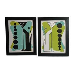 Original Signed Framed Print "Circles" Pawlie n Ester Cat Series MCM Style Frame
